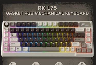 RK Royal Kludge R75 (Wired or Wireless) is a 75% compact mechanical gaming keyboard featuring hot-swappable switches, customizable RGB lighting, and smooth gasket-mounted typing, giving you a premium feel at a budget price. Its MDA profile PBT keycaps and quiet yet responsive linear switches deliver great performance for both gaming and typing, while programmable layouts via QMK/VIA let you tailor the setup to your playstyle. Whether wired or with multi-mode wireless options (Bluetooth/2.4 GHz/USB-C), the R75 blends style, flexibility, and value in a space-saving design perfect for gamers and everyday users.